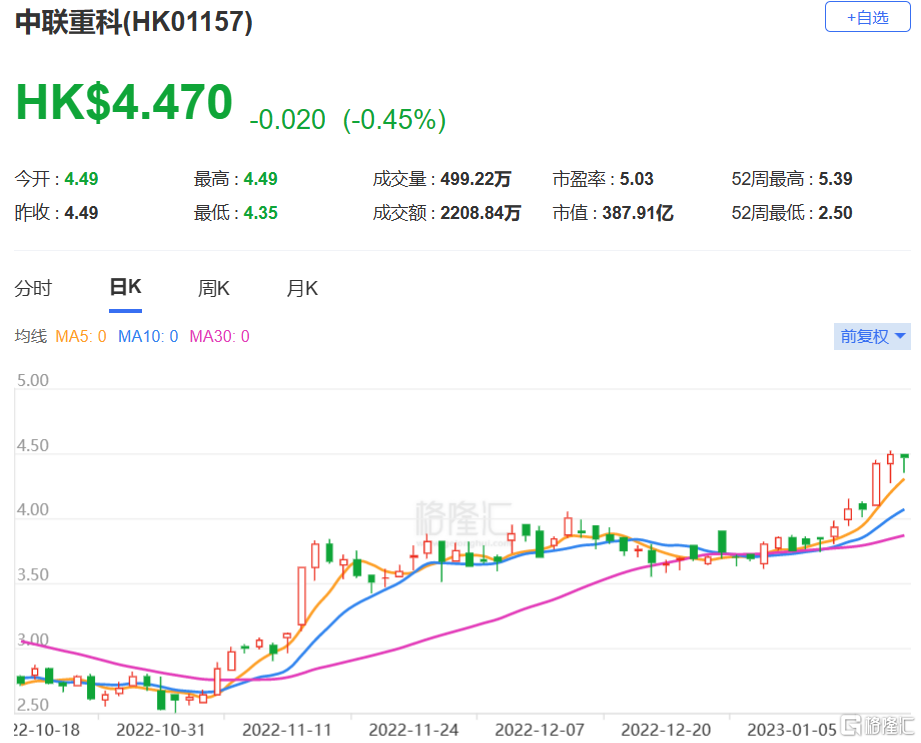 该行认为,上述交易最快会在今年下半年完成。长远来看,此次分柝利好于公司的高空作业平台(AWP)业务,料该业务可为2022财年贡献53亿元人民币的收入,占整体的13%。该行将其目标价由4.2港元上调至4.5港元,并维持其评级为“中性”。