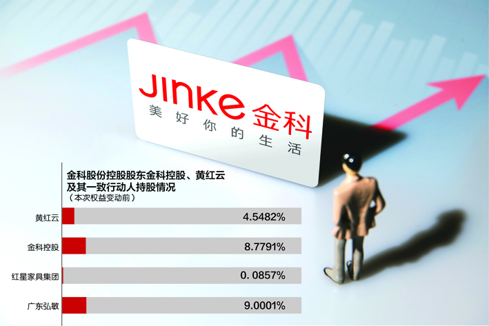 2022年1月6日,广东弘敏、红星家具集团与黄红云、金科控股签订《一致行动人协议》;1月14日,黄红云与陶虹遐及女儿黄斯诗宣布解除一致行动人关系;至2月9日,黄红云与红星系签订的《一致行动人协议》正式生效,合计持股约29.36%。