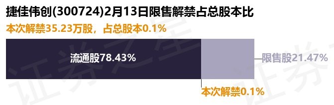 根据市场公开信息整理,捷佳伟创(300724)(300724)于2月13日将有35.23万股限售股份解禁上市,为公司股权激励限售股份,占公司总股本0.1%。最近一年内,该股累计解禁40.45万股,占总股本的0.12%。本次解禁后,公司还有7476.89万股限售股份,占总股本21.47%。具体如下图所示: